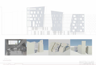 Al final me centré en resolver las viviendas y en trabajar el alzado. Finalmente al eliminar los espacios que relacionaban las viviendas y las oficinas tras las correción, las pasarelas del segundo patio no son necesarias. Me planteo que hacer con el patio.
